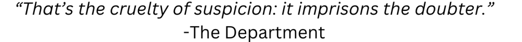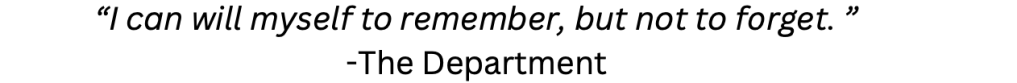 From campus classrooms to sex dens to backwoods hideaways, The Department follows Neil and Lucia as they descend into obsession, delusion, and the dangerous terrain of memory.